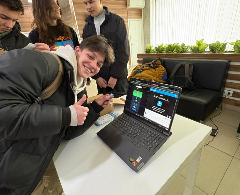 În completarea aplicației, studenții au organizat și un quiz interactiv despre parole, care a stimulat gândirea critică și i-a provocat pe participanți să identifice cele mai bune practici pentru protejarea datelor personale. Această componentă a fost extrem de apreciată, fiind atât educativă, cât și distractivă, implicând studenții într-un mod activ.