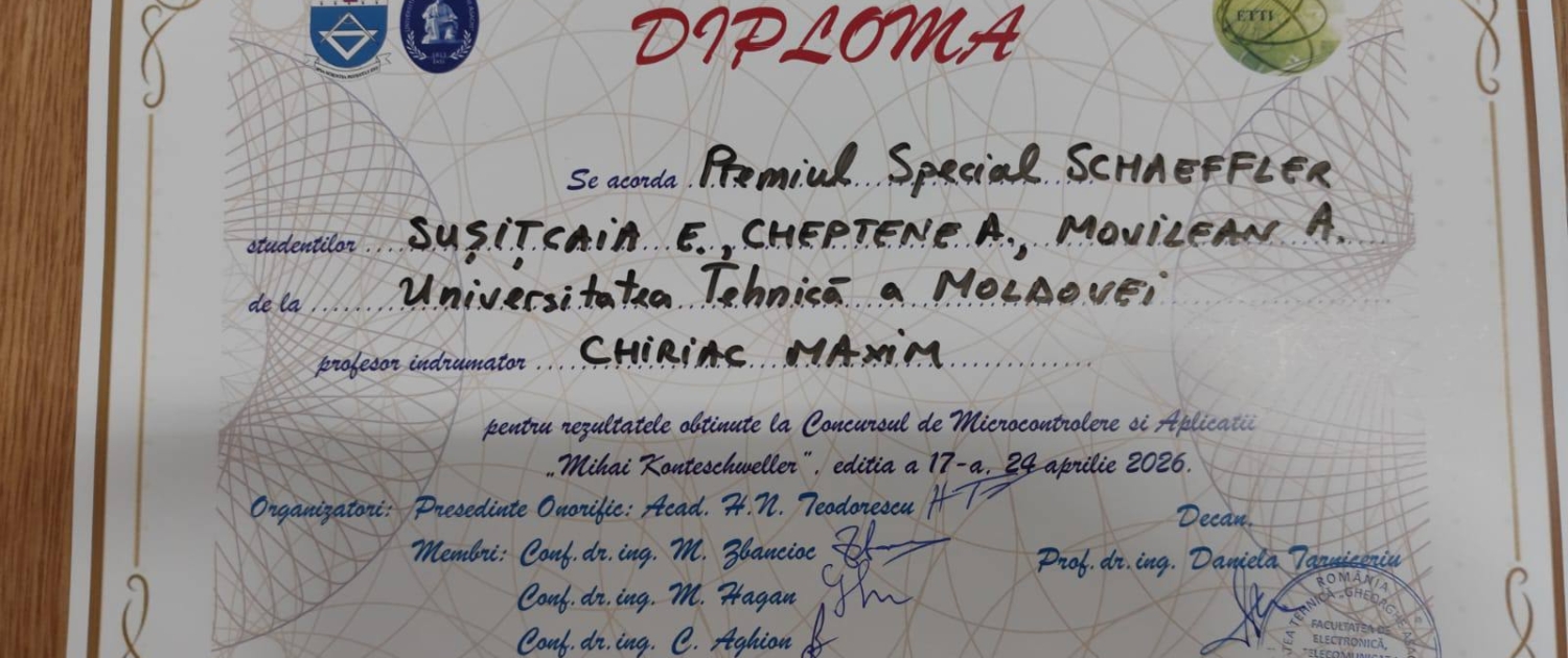 🔹 Premiul Special SCHAEFFLER – Sușitcaia Elena (IBM-231), Cheptene Andrian (MN-221), Movilean Anastasia (IBM-241), Coordonator: asist. univ. drd. Chiriac Maxim