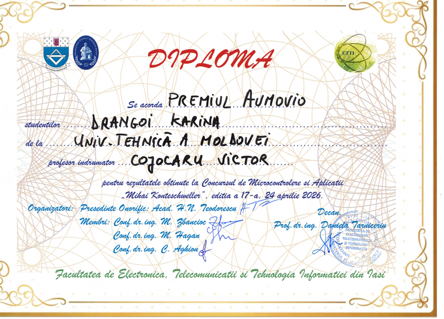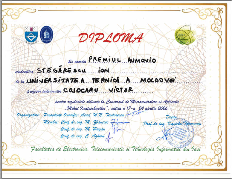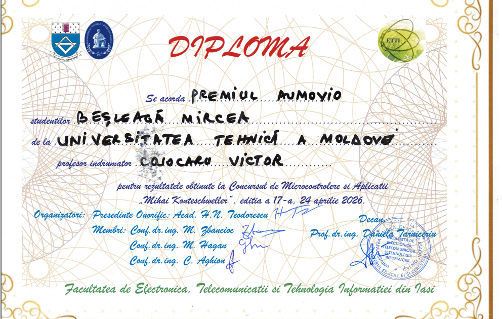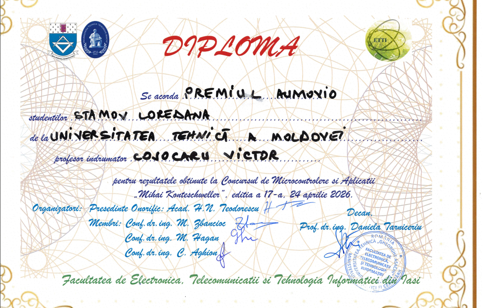 Aceștia au revenit recent de la Concursul de Microcontrolere și Aplicații „Mihail Konteschweller”, desfășurat pe data de 24 aprilie 2026, la Universitatea Tehnică „Gheorghe Asachi” din Iași, România, cu rezultate remarcabile. Reprezentând programele de studii Electronică Aplicată, Microelectronică și Nanotehnologii, Inginerie Biomedicală și Robotică, studenții s-au evidențiat în cadrul unuia dintre cele mai relevante evenimente academice din domeniul microelectronicii și sistemelor embedded.
