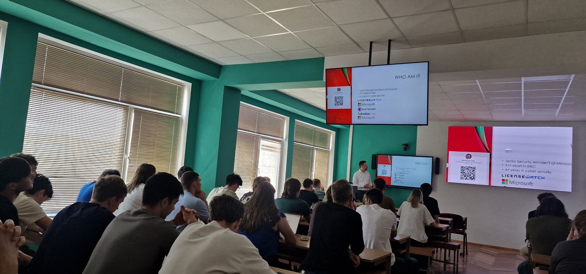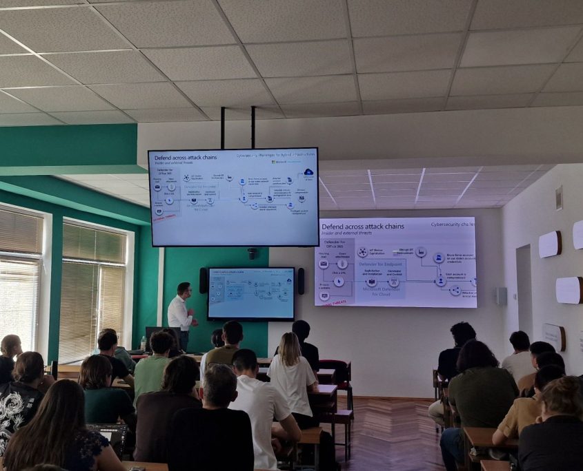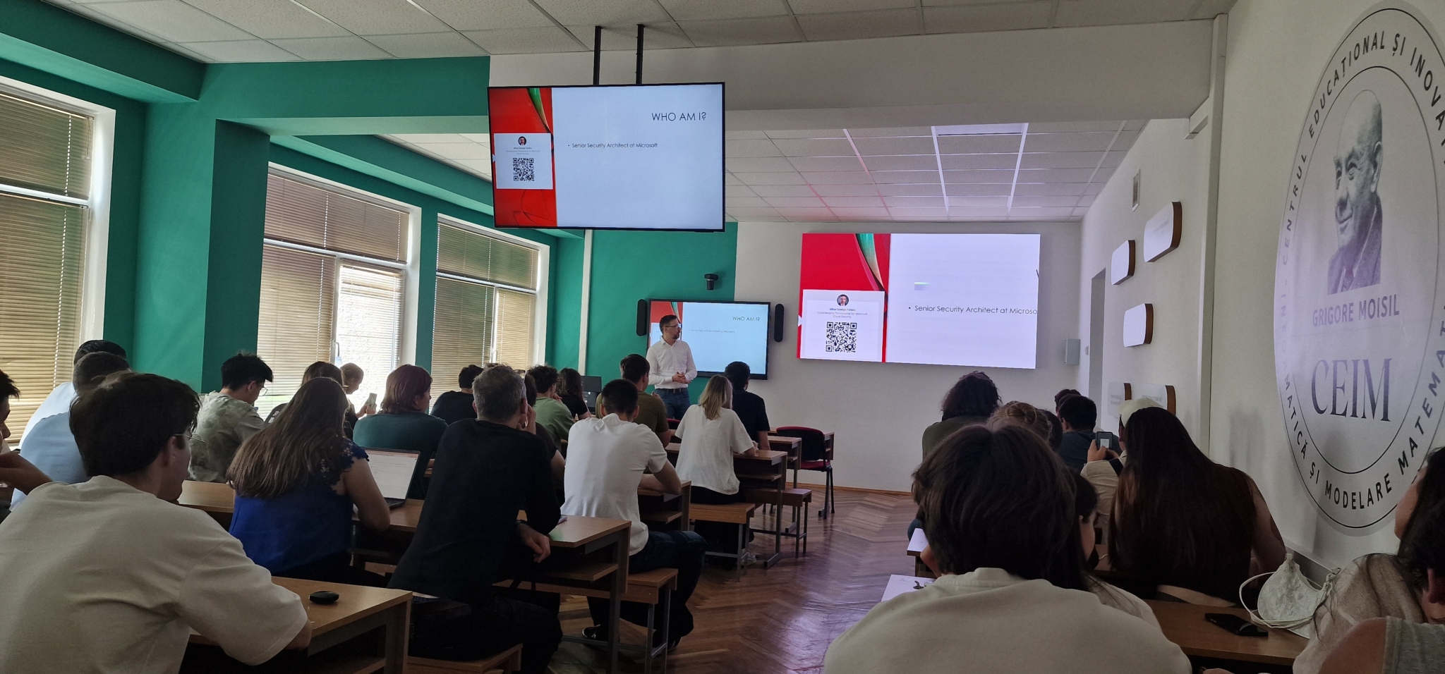 Invitat special Mihai George Forlafu, Senior Cybersecurity CSA la Microsoft, care a răspuns invitației facultății noastre de a împărtăși din experiența sa profesională și de a discuta cele mai recente tendințe în domeniu.