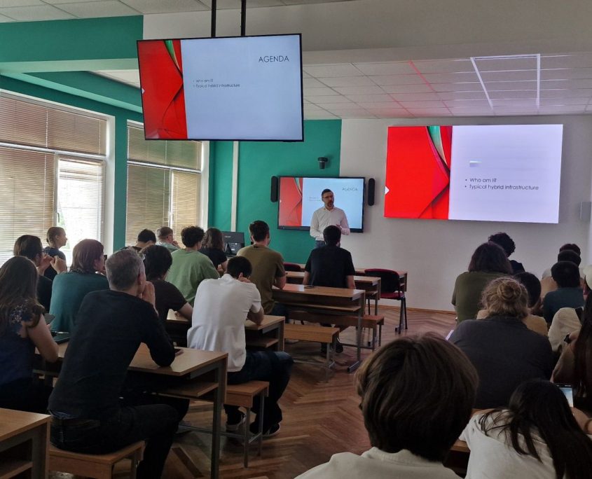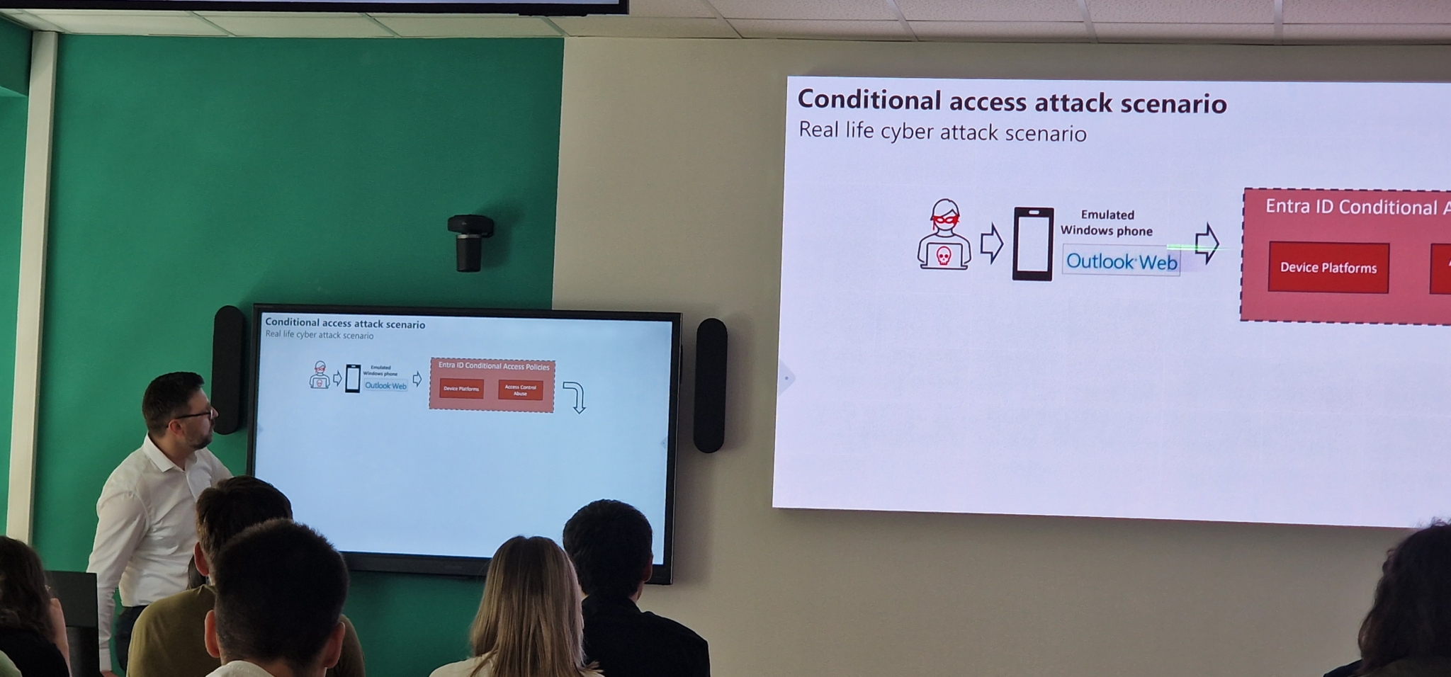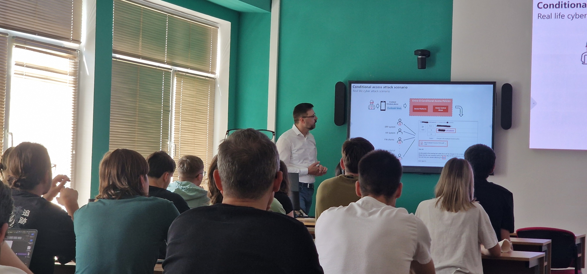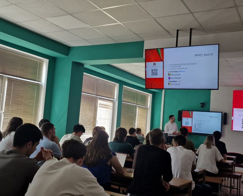Invitat special Mihai George Forlafu, Senior Cybersecurity CSA la Microsoft, care a răspuns invitației facultății noastre de a împărtăși din experiența sa profesională și de a discuta cele mai recente tendințe în domeniu.