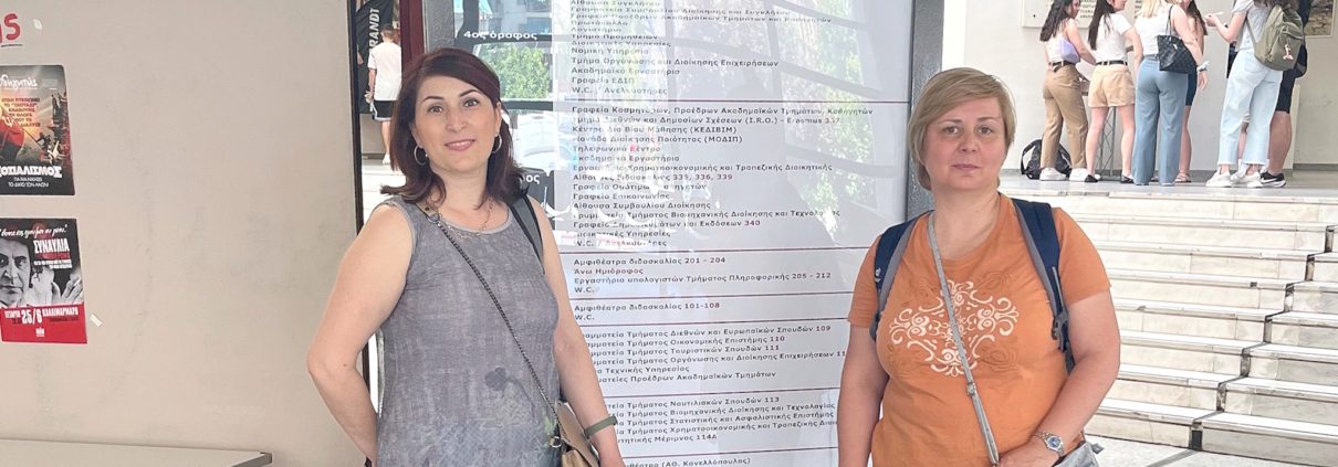 În cadrul întâlnirilor desfășurate cu dr. Christina KONTOGOULIDOU, șefa Biroului Relații Internaționale, și cu dl Alexandros TSORAKLIDIS de la Universitatea din Piraeus, au fost discutate oportunități de schimb de bune practici în predare, utilizarea metodelor digitale interactive, precum și dezvoltarea unor cadre favorabile mobilităților internaționale pentru studenți și cadre didactice.