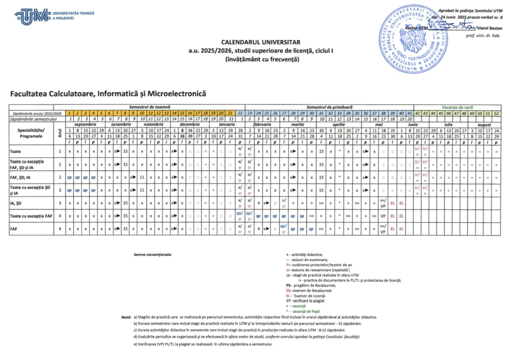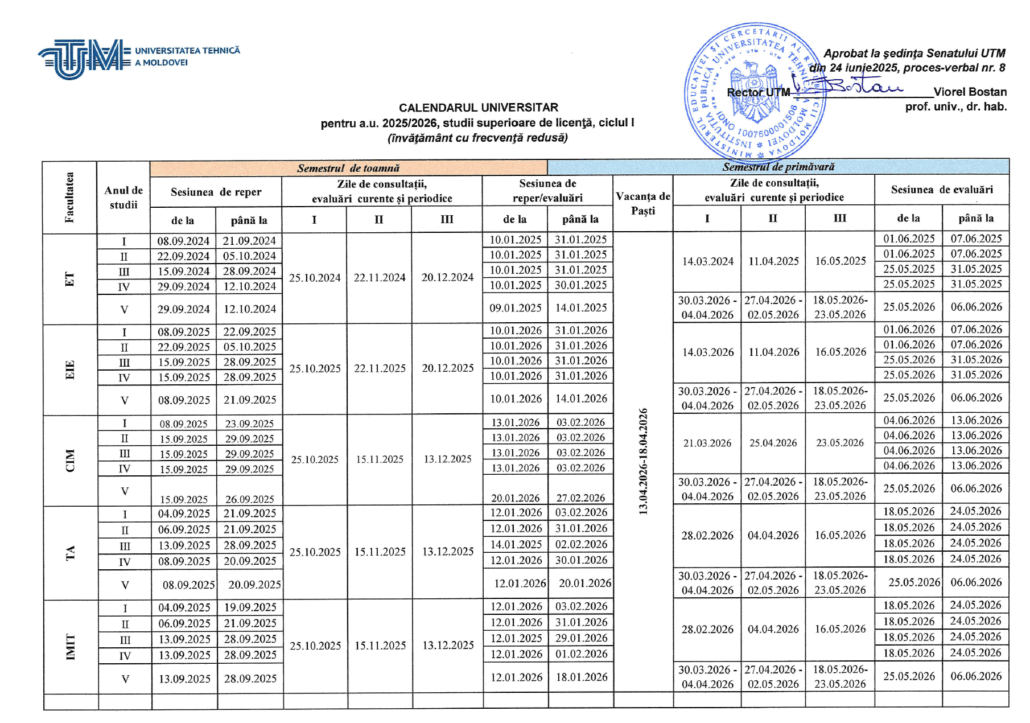 Calendarul universitar